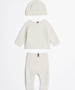 BABY CABLE KNIT THREE-PIECE GIFT SET