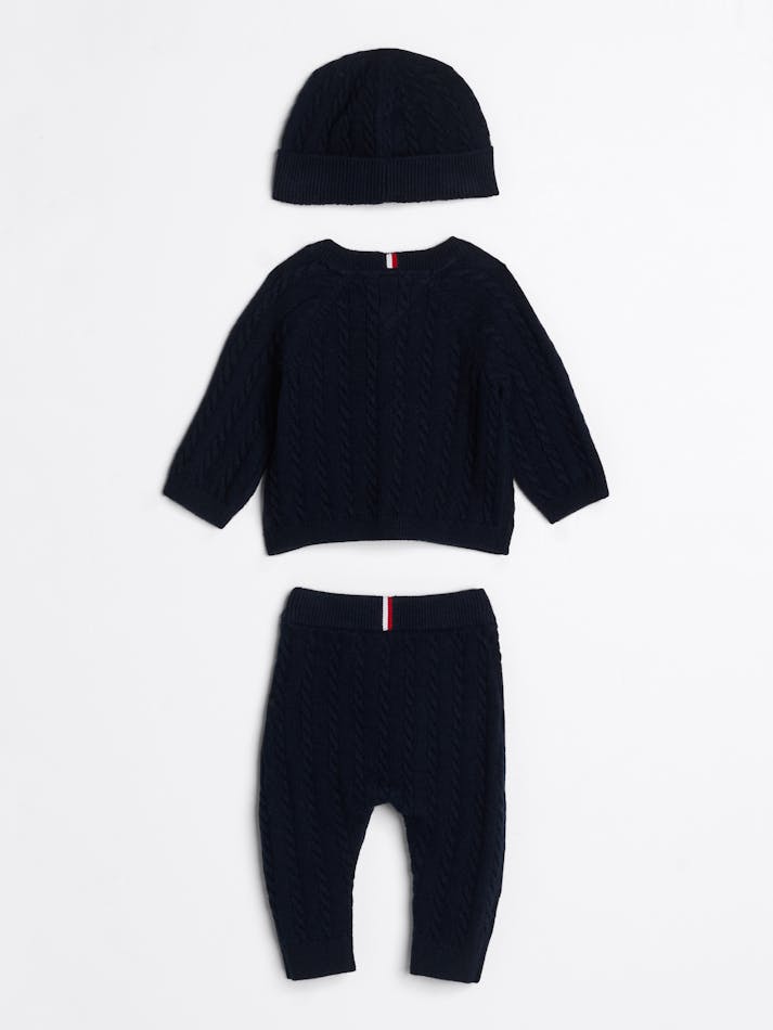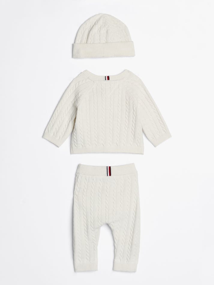 BABY CABLE KNIT THREE-PIECE GIFT SET