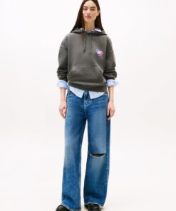 This hoody combines a boxy fit and dropped shoulders with a vibrant logo on the back to create a statement piece.