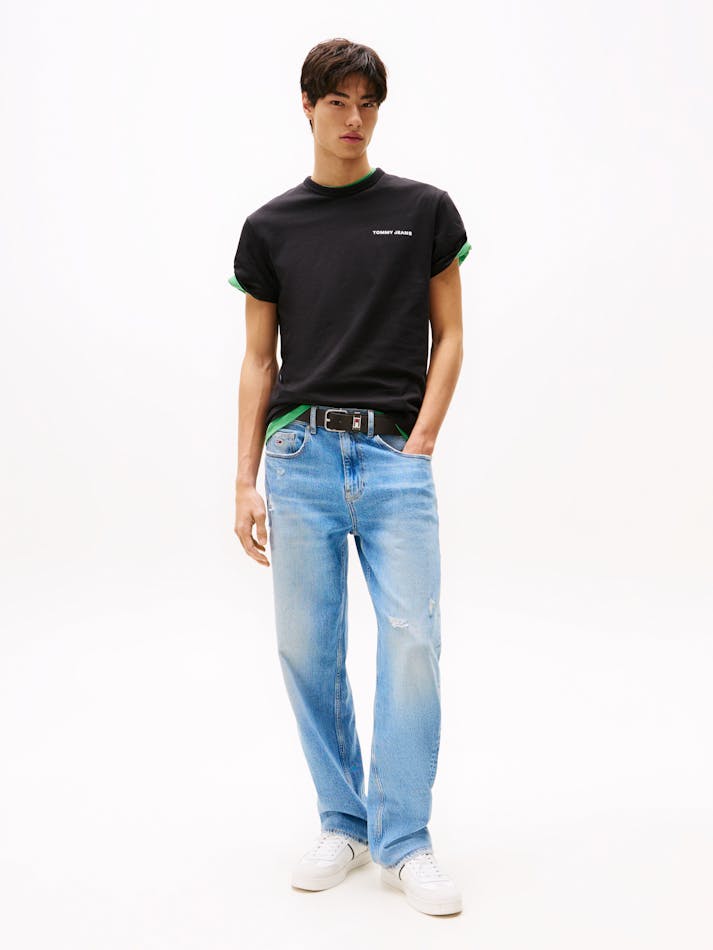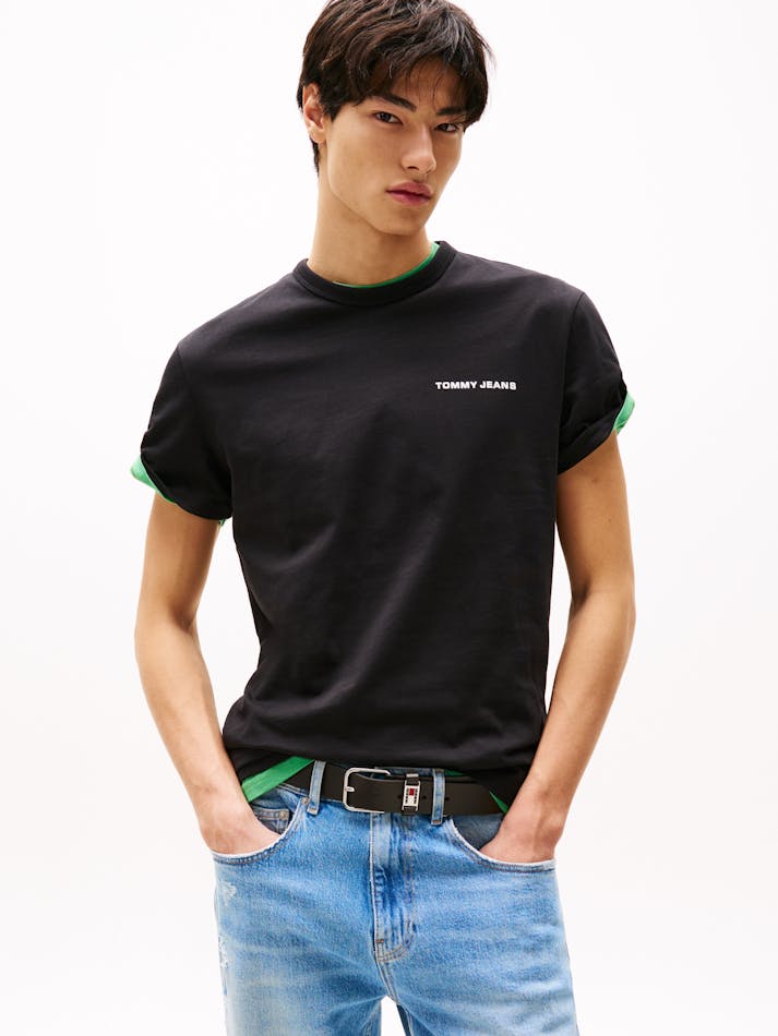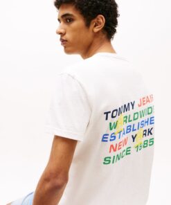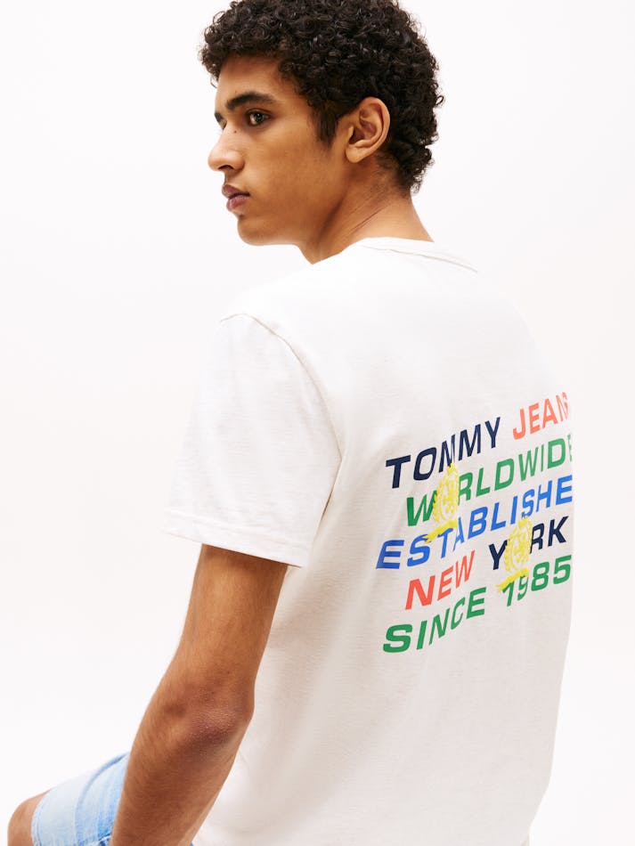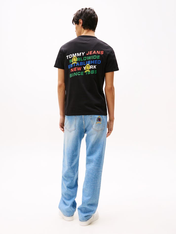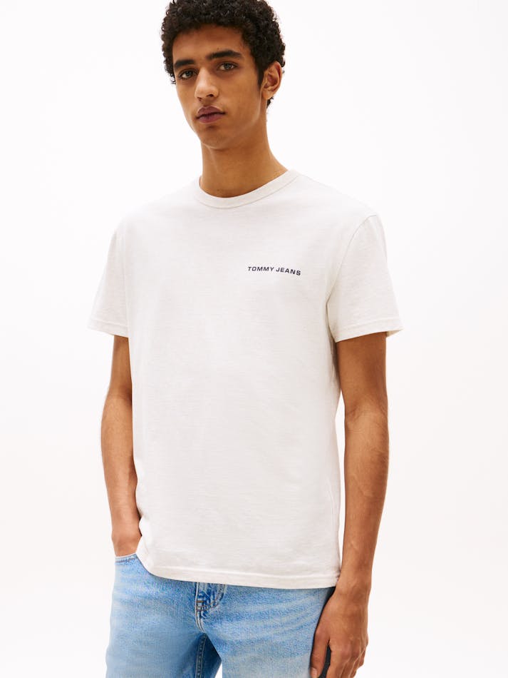 Upgrade your casualwear with this pure cotton T-shirt featuring a Tommy Jeans crest graphic on the back for standout appeal.