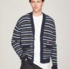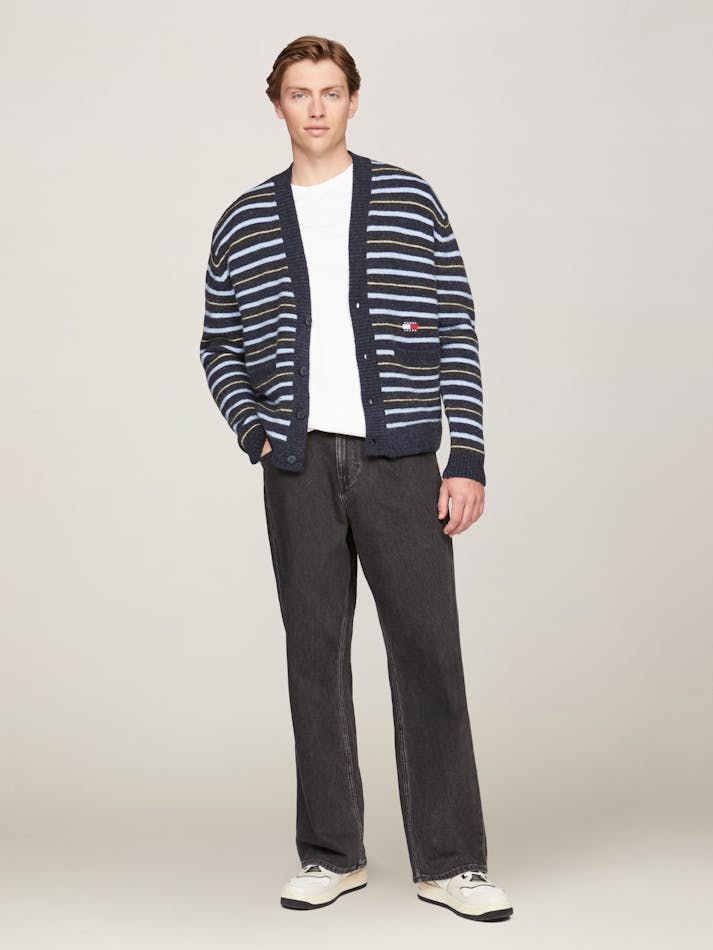 This boxy jacquard cardigan makes for an easy extra layer on chilly days, crafted from a cosy wool blend and finished with an all-over stripe.