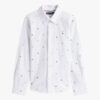 A fun and playful shirt for kids, this stretch cotton design pairs a smart button-down front with a charming all-over stripe and flag print.
