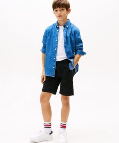 Inspired by the year that Tommy Hilfiger first designed his namesake label, our 1985 collection reimagines archival icons. Bring a smart twist to summer occasions with these stretch-cotton chino shorts, featuring classic styling and subtle logo accents.