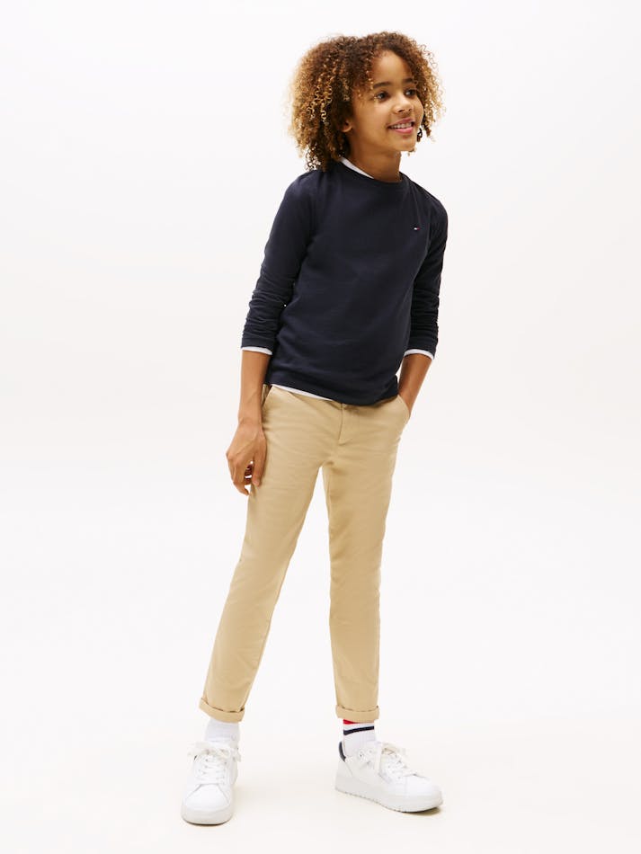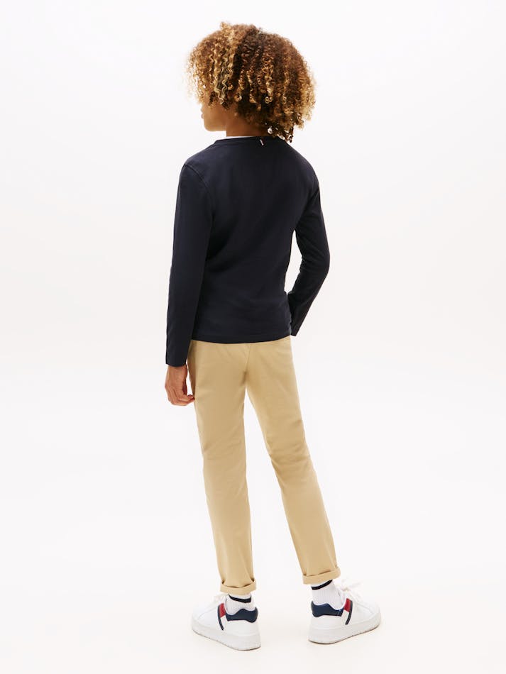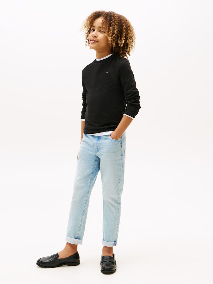 The Boys Basic Crew Knit Long Sleeve T-Shirt is a youthful twist on a core Tommy Hilfiger style. Clean and simple, this collared polo has a small flat logo stamped on the chest designed with a crew neck for all occasions.