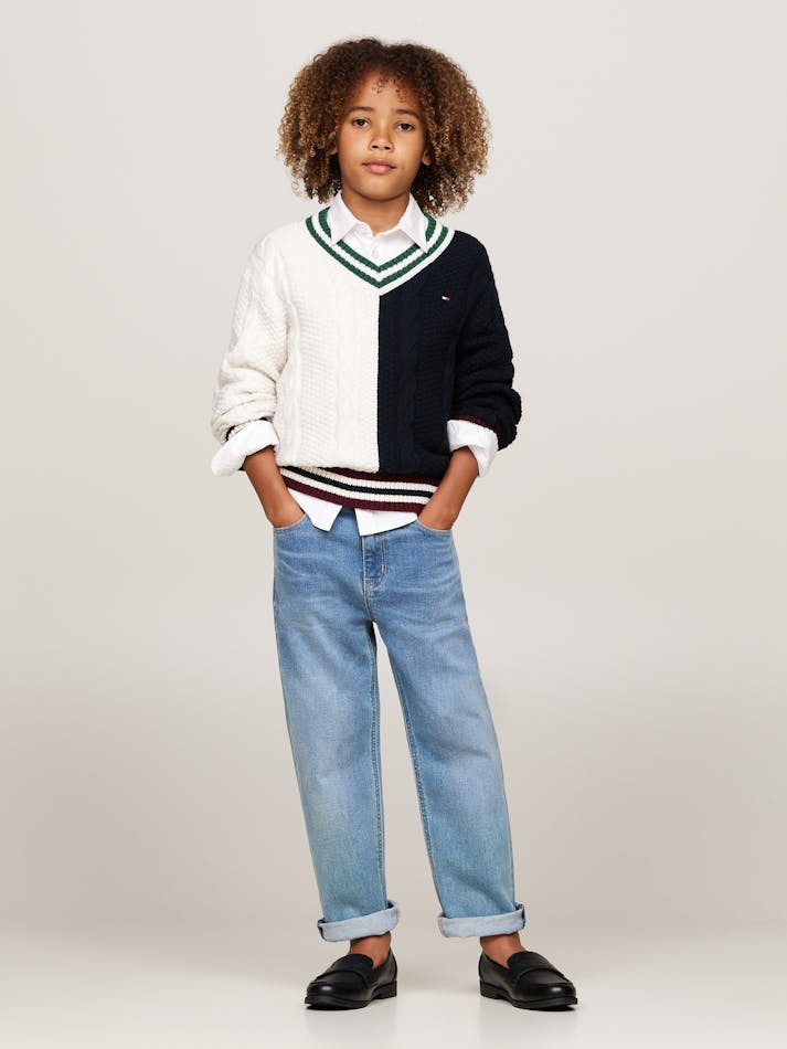 BOYS 8-16 CABLE KNIT V-NECK JUMPER