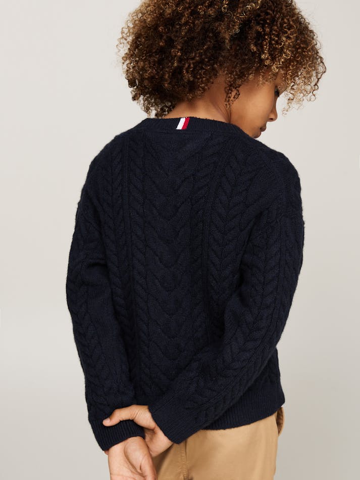 This classic crew neck jumper showcases a colour-blocked, cable-knit design, to put a heritage-inspired spin on signature styling.