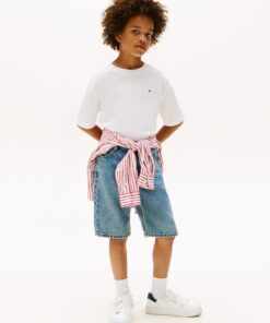 Add a classic touch to an everyday ensemble with this pure cotton T-shirt, featuring a crew neck and Tommy Hilfiger flag embroidery.