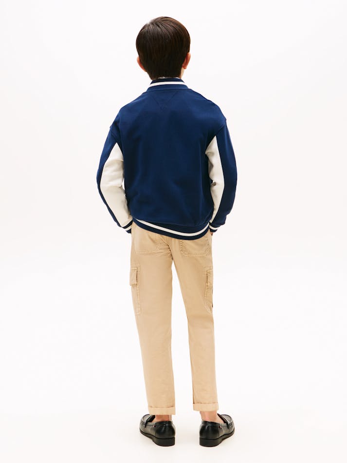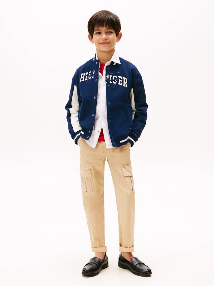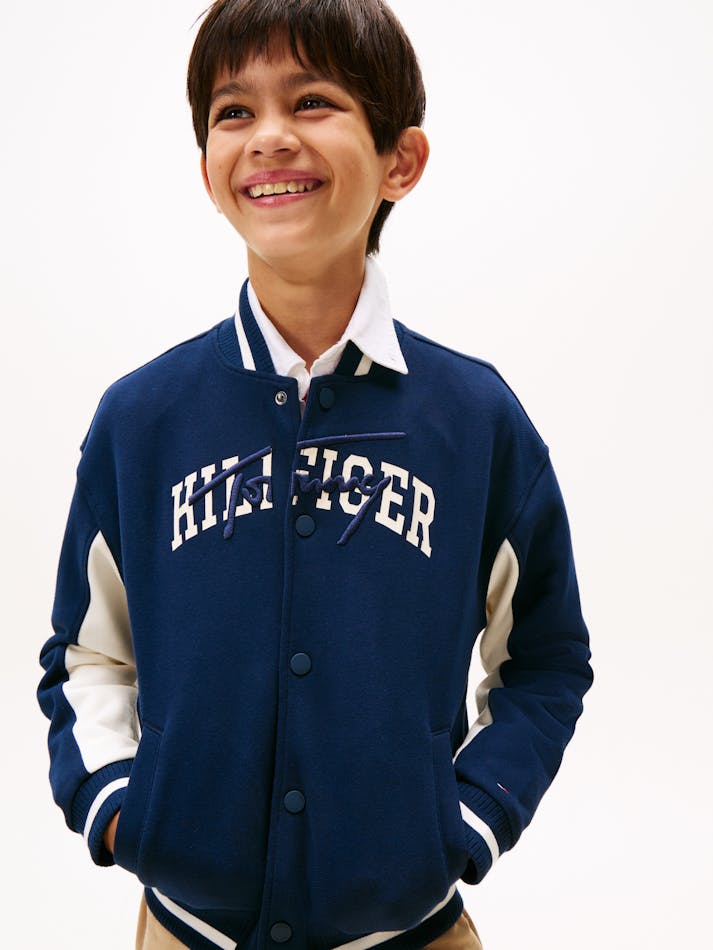 A Tommy take on the classic bomber, this jacket is made with regenerative cotton and features a baseball collar and easy snap button front. The logo detailing on the chest brings a touch of cool, perfect for layering in transitional weather.