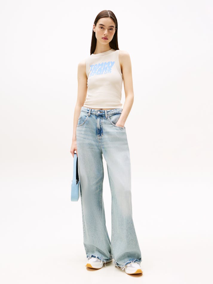 Welcome sunny days in this slim tank top featuring a classic crew neck and eye-catching bubble branding on the chest.