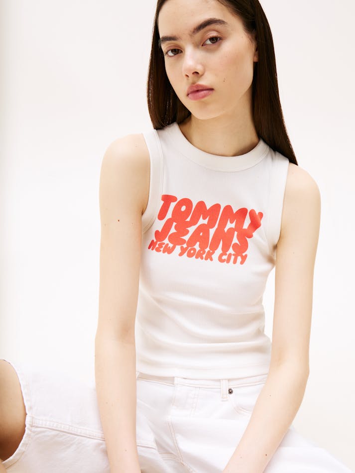 Welcome sunny days in this slim tank top featuring a classic crew neck and eye-catching bubble branding on the chest.