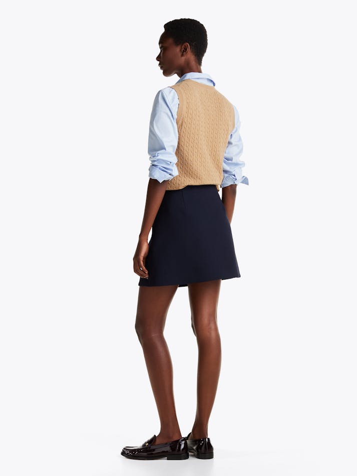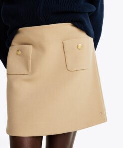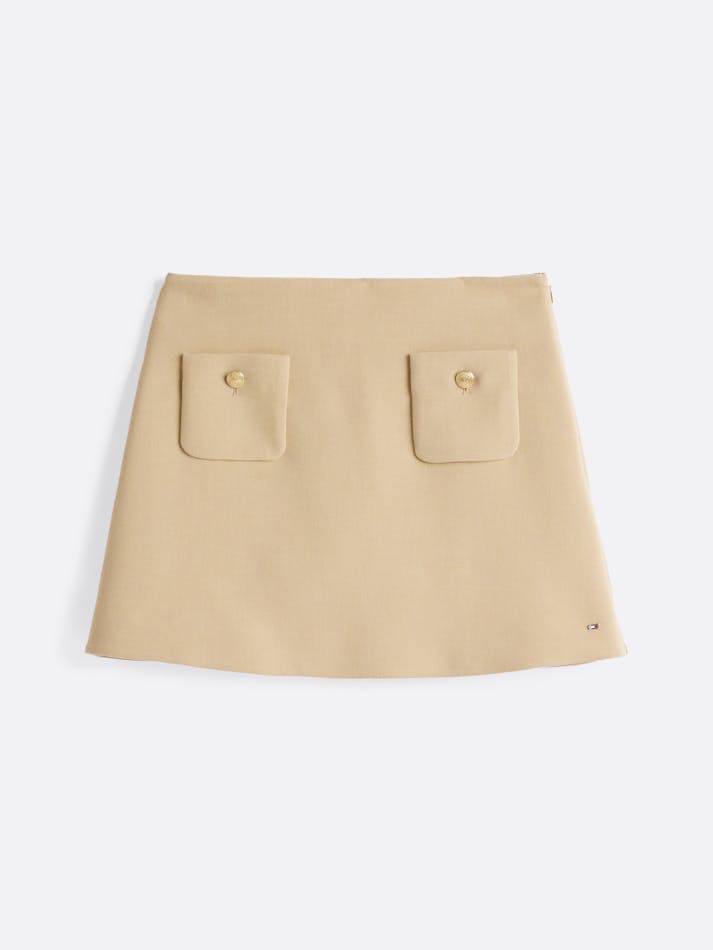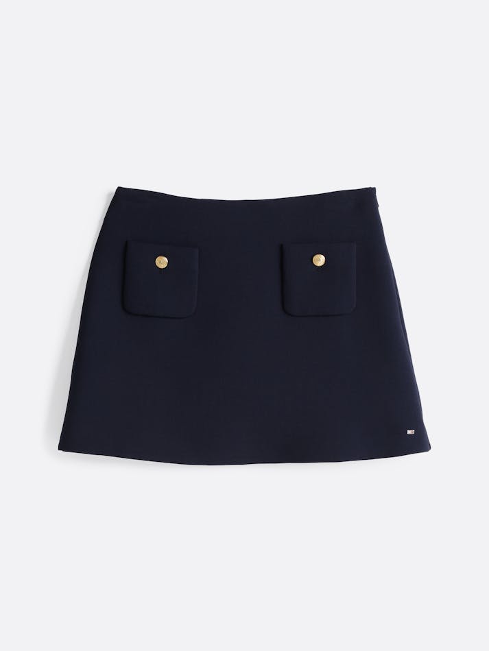 The buttoned patch pocket detailing adds a sophisticated flair to this mini skirt, making it perfect for seasonal parties.