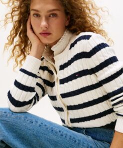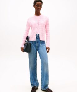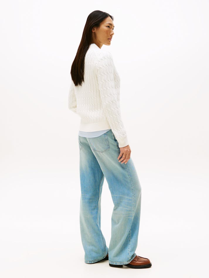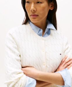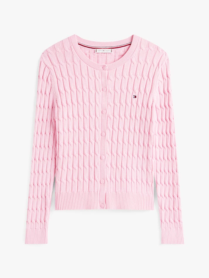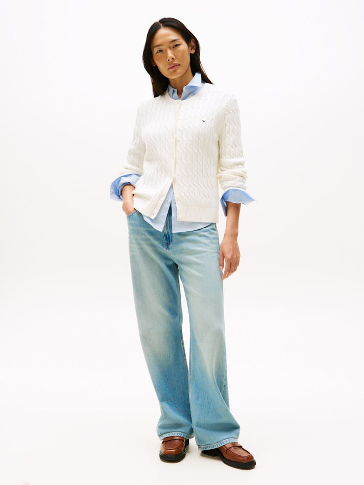 A nod to timeless style, this cardigan features a cosy fit and classic cable knit. The subtle flag embroidery adds a refined touch, perfect for layering over any look.