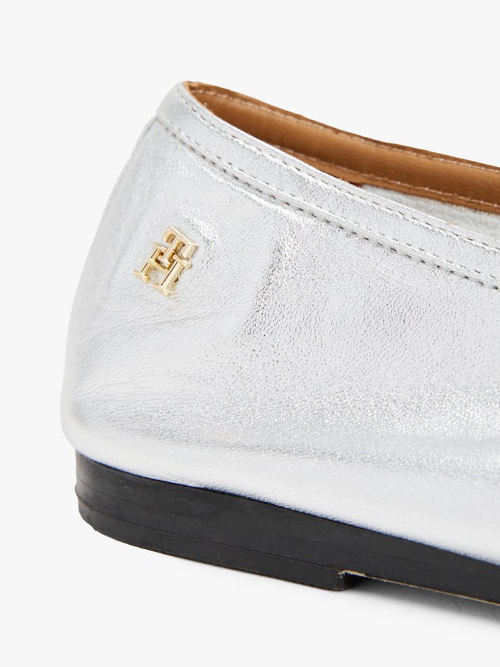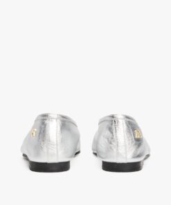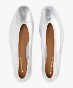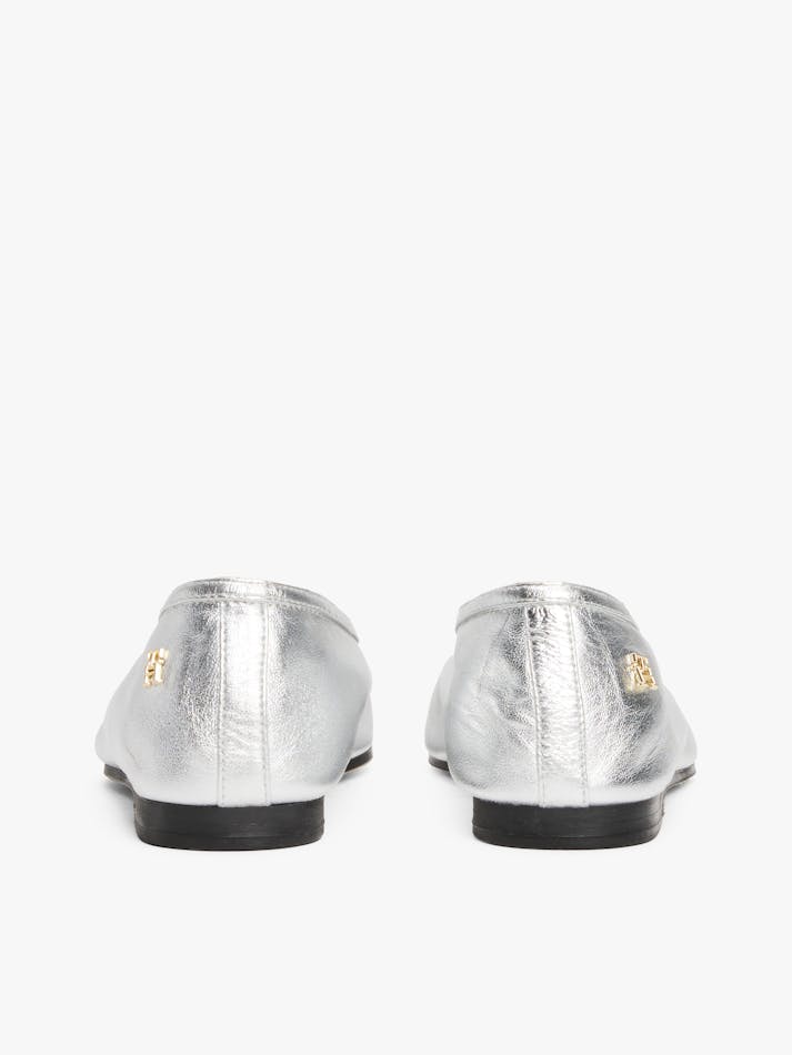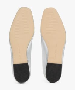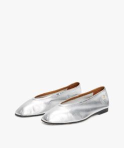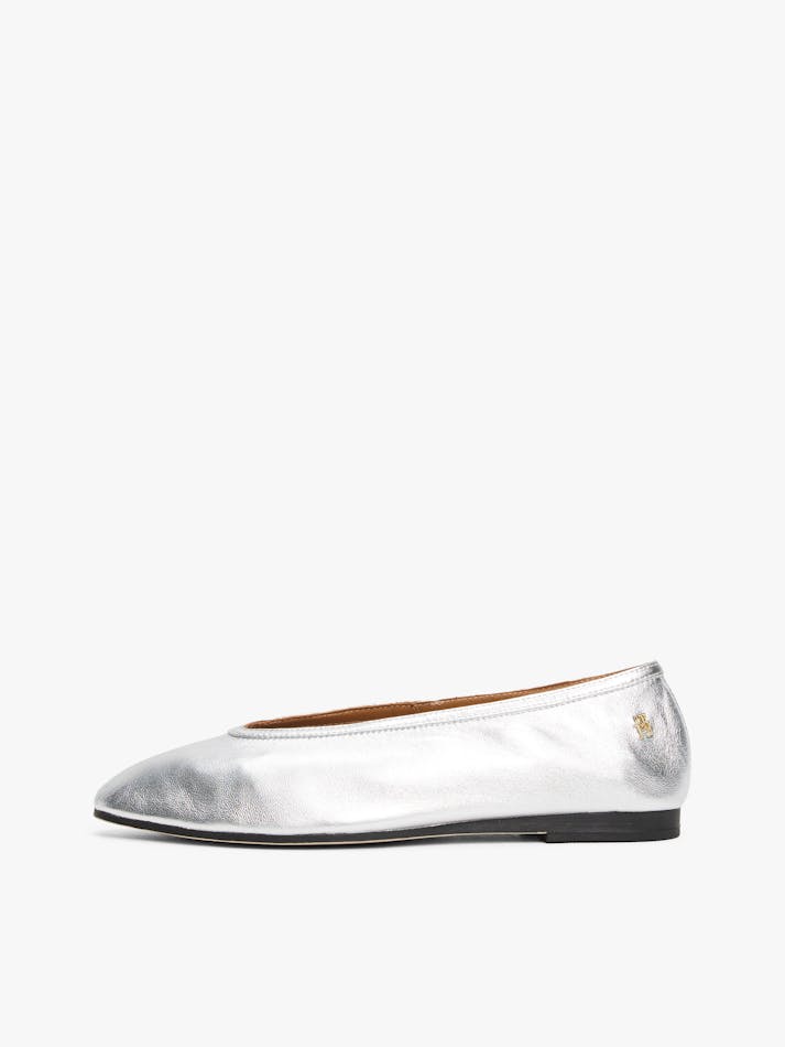 A metallic finish and squared toe bring a sleek, modern freshness to the classic femininity of these soft leather ballerinas.