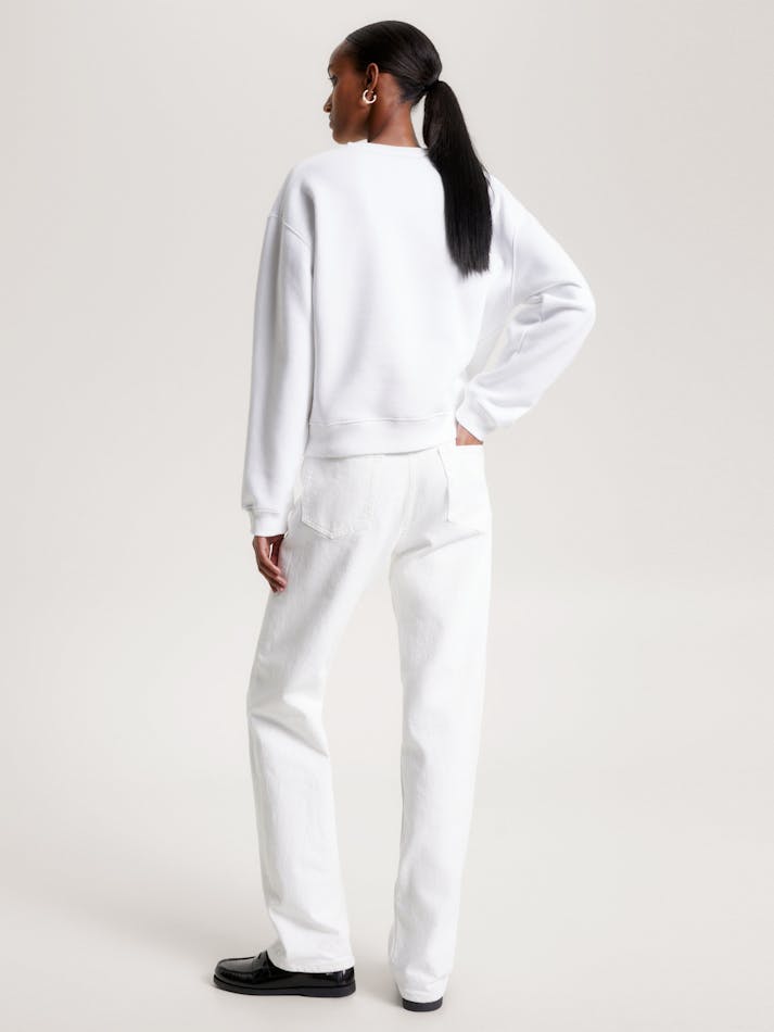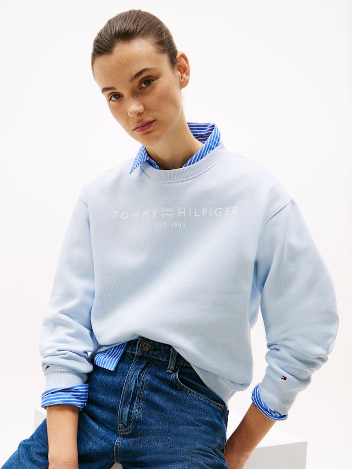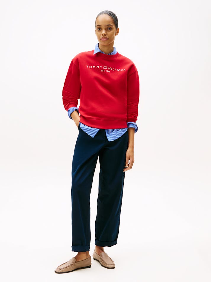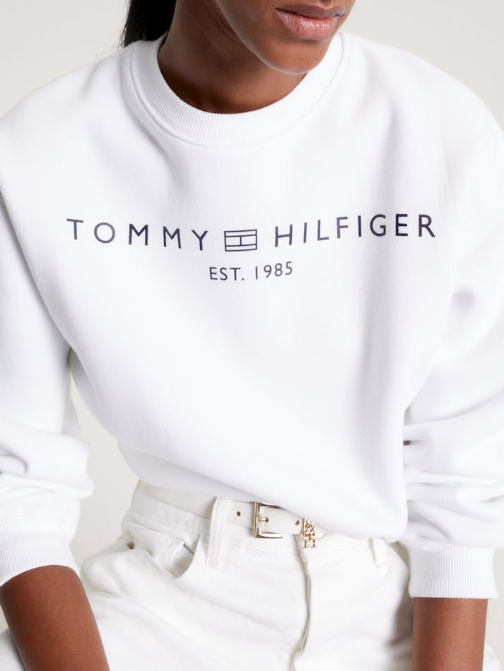 Casual days call for this cotton-blend sweatshirt featuring a classic crew neck and a Tommy Hilfiger logo emblazoned across the chest.