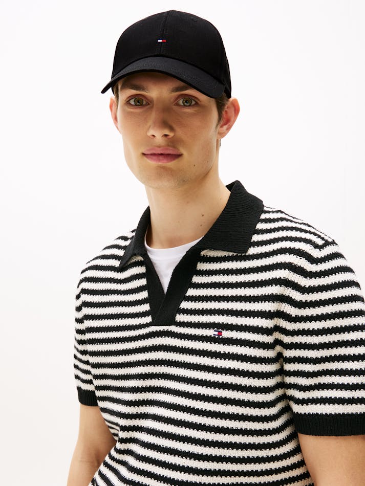 Top off that all American cool look with the Tommy Hilfiger Classic Baseball Cap. This baseball cap is made from pure cotton with button and eyelet detail on top. Adjustable fastening ensures a perfect fit. Signature Tommy Hilfiger flag is embroidered on the front and logo embroidered on the back.
