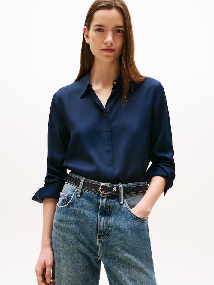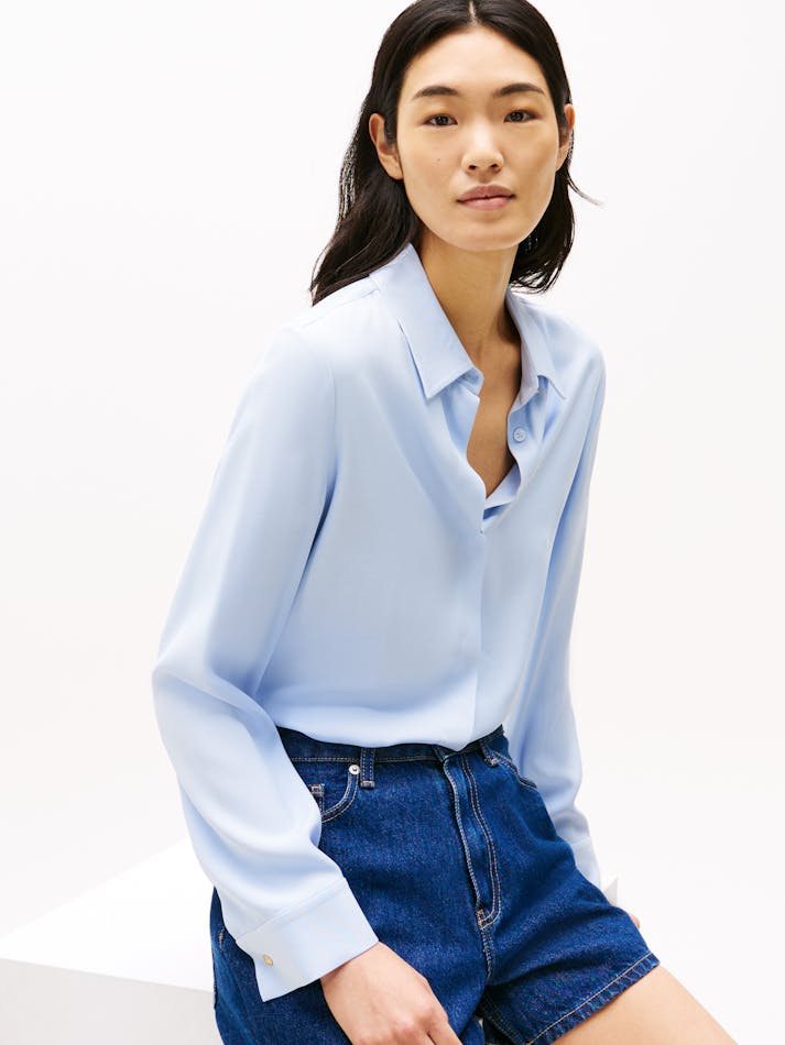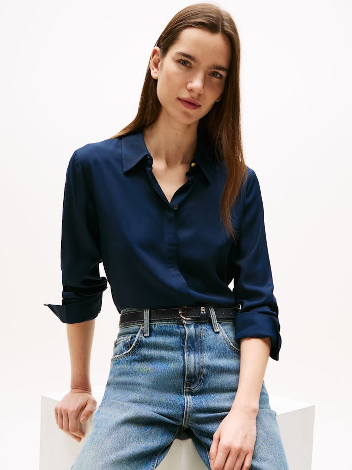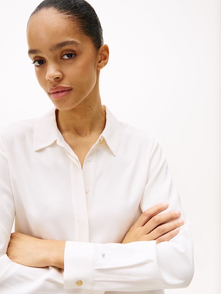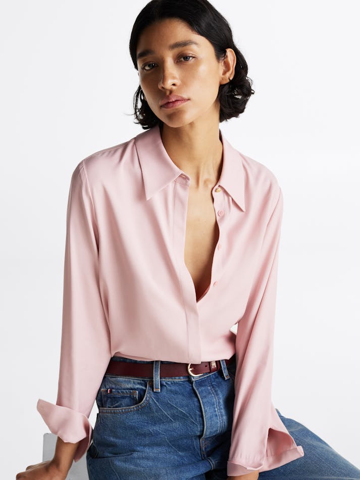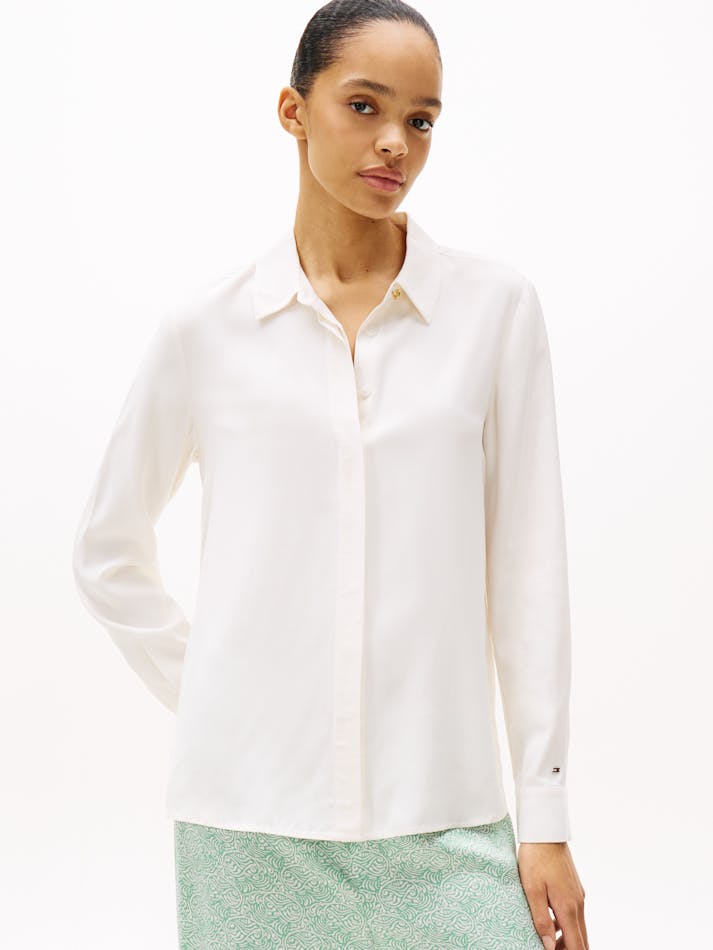 It’s all about understated elegance with this relaxed-fit shirt crafted from soft-to-the-touch fabric and finished with a neatly concealed placket.