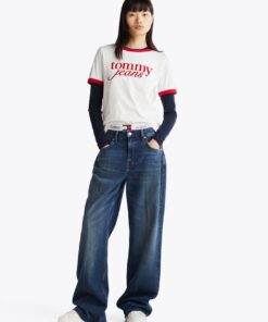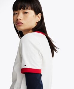 Make a statement in this cotton T-shirt, thanks to its bold Tommy Jeans logo, contrast detail and classic crew neck.