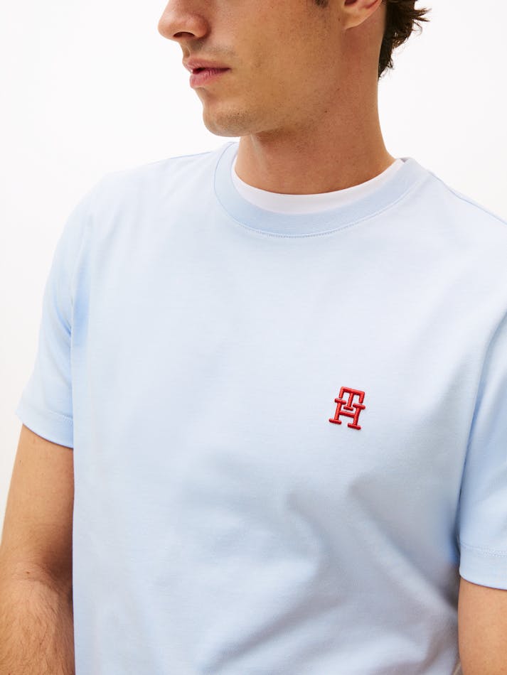 Refresh your daily looks with this pure cotton crew-neck T-shirt, featuring contrast TH monogram embroidery on the chest.