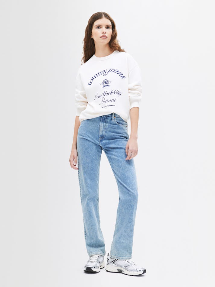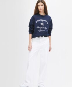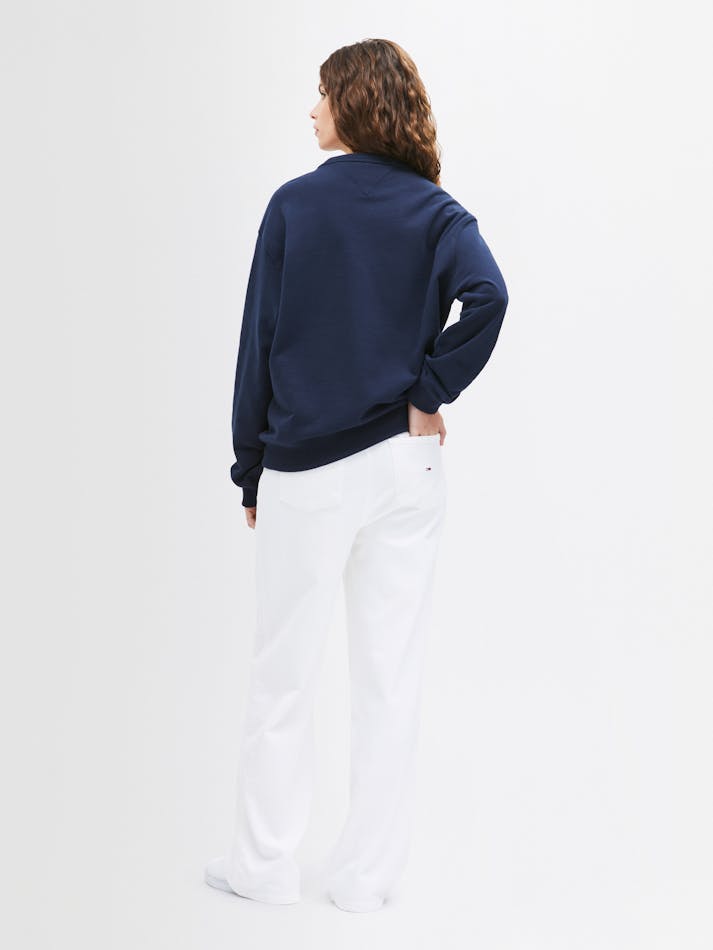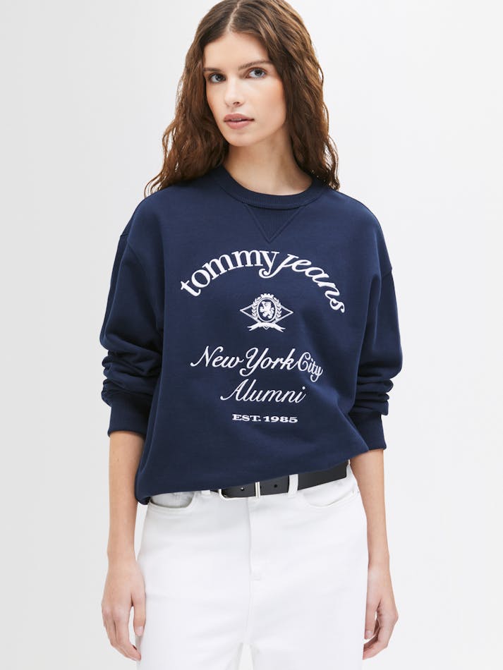 This pure cotton sweatshirt features a classic crew neck and statement logo embroidery on the chest, delivering signature Tommy Jeans style to your casual wardrobe.