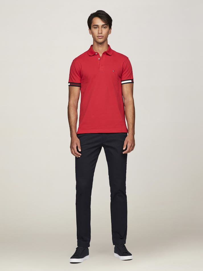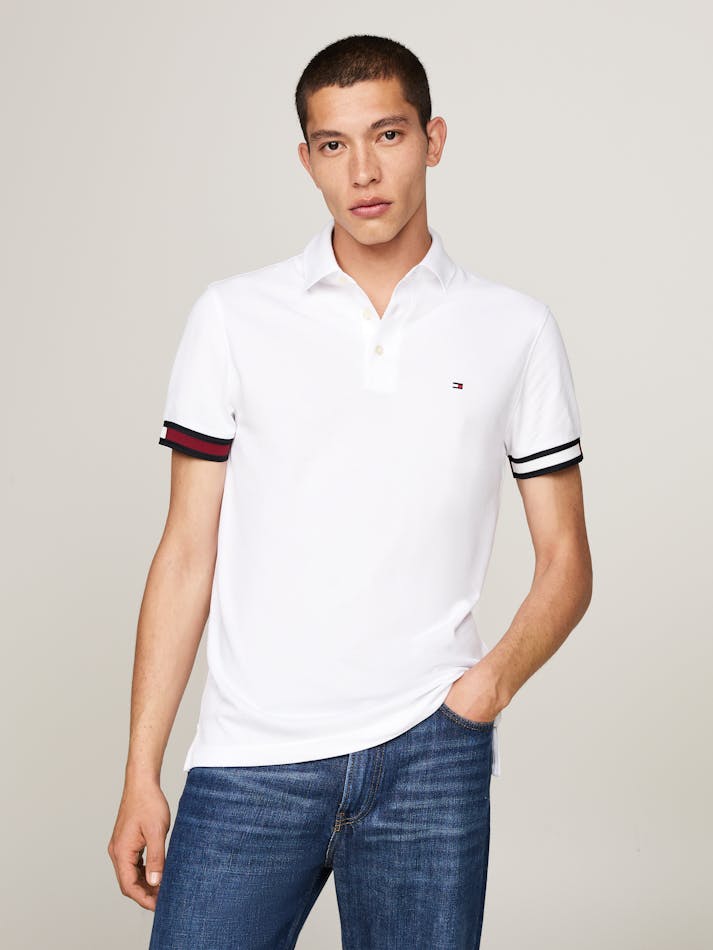Adding a Tommy twist to a timeless classic, this polo shirt is made from a comfortable stretch cotton blend and features stand-out stripe details sleeve cuffs.