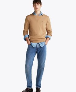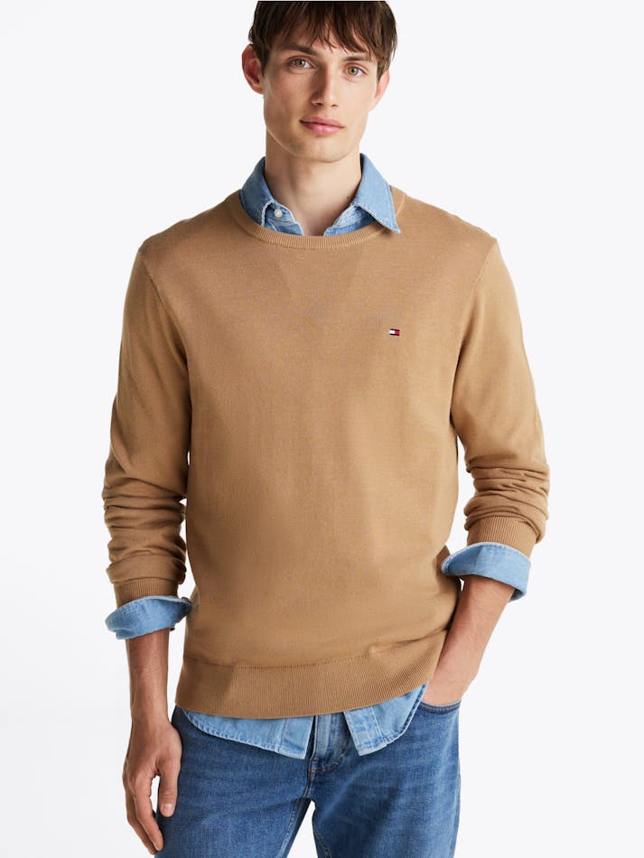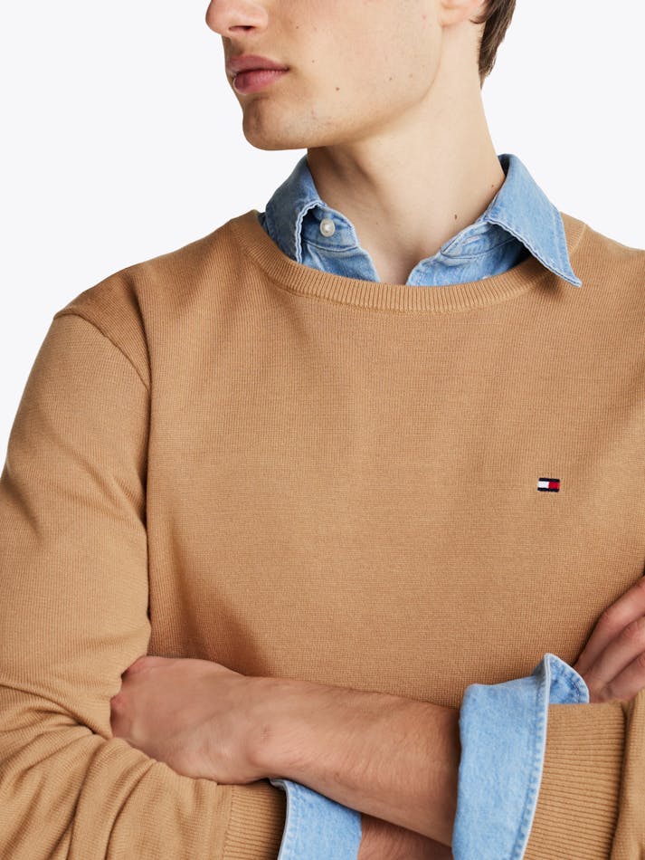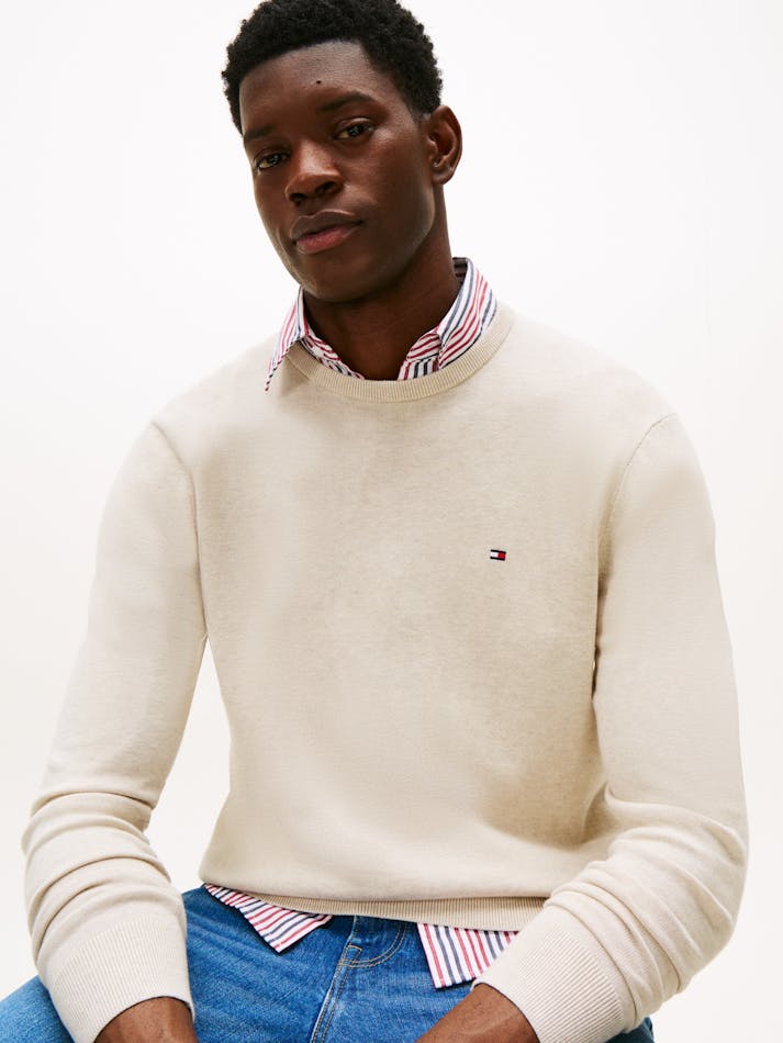 Thanks to breathable fabric and subtle flag embroidery on the chest, this crew-neck jumper is perfect for creating a laid-back look.
