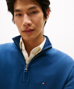 Breathable pure cotton makes this half-zip jumper an ideal layering piece during the transeasonal months, while flag embroidery adds a signature finish.