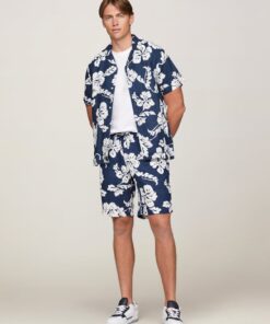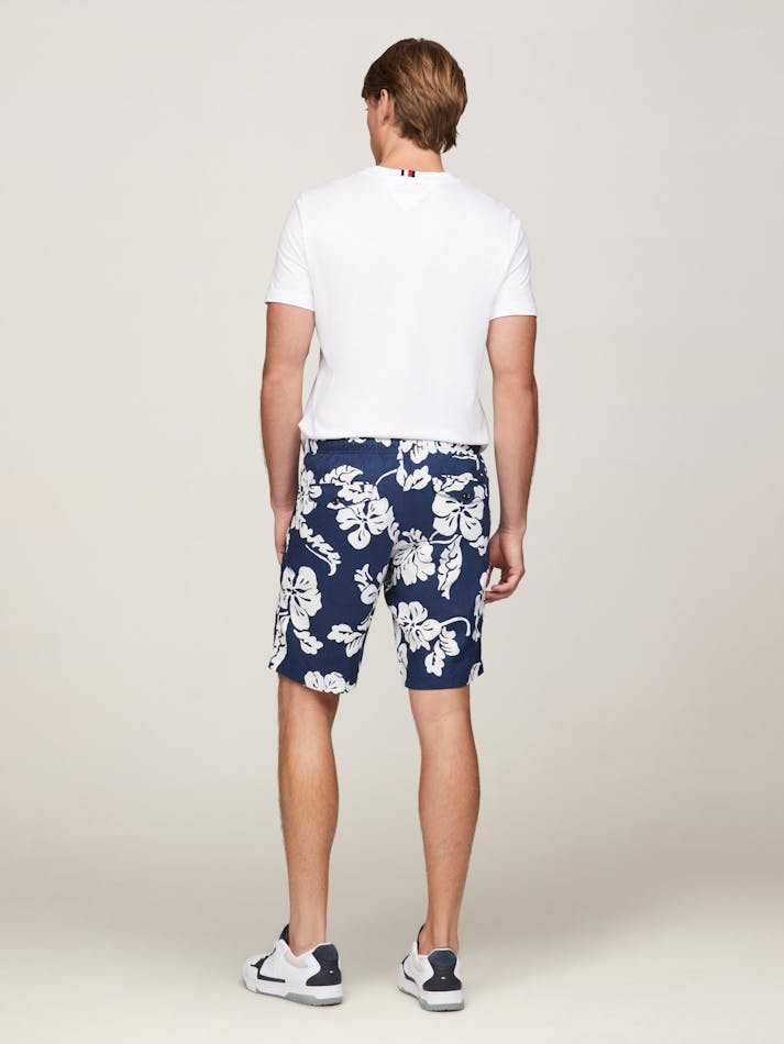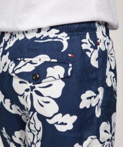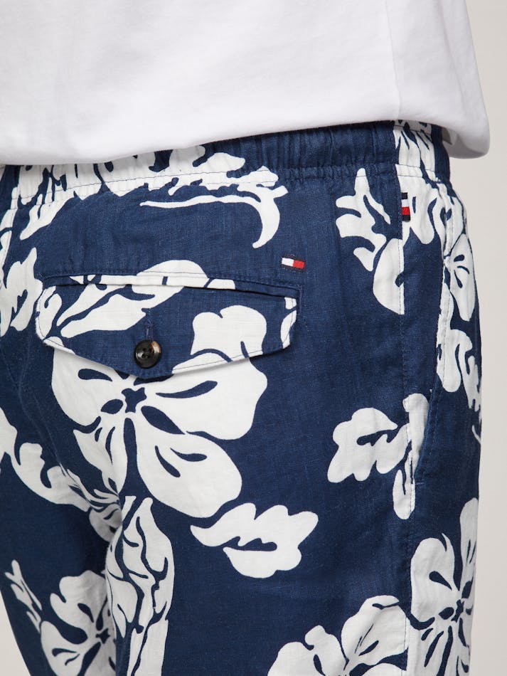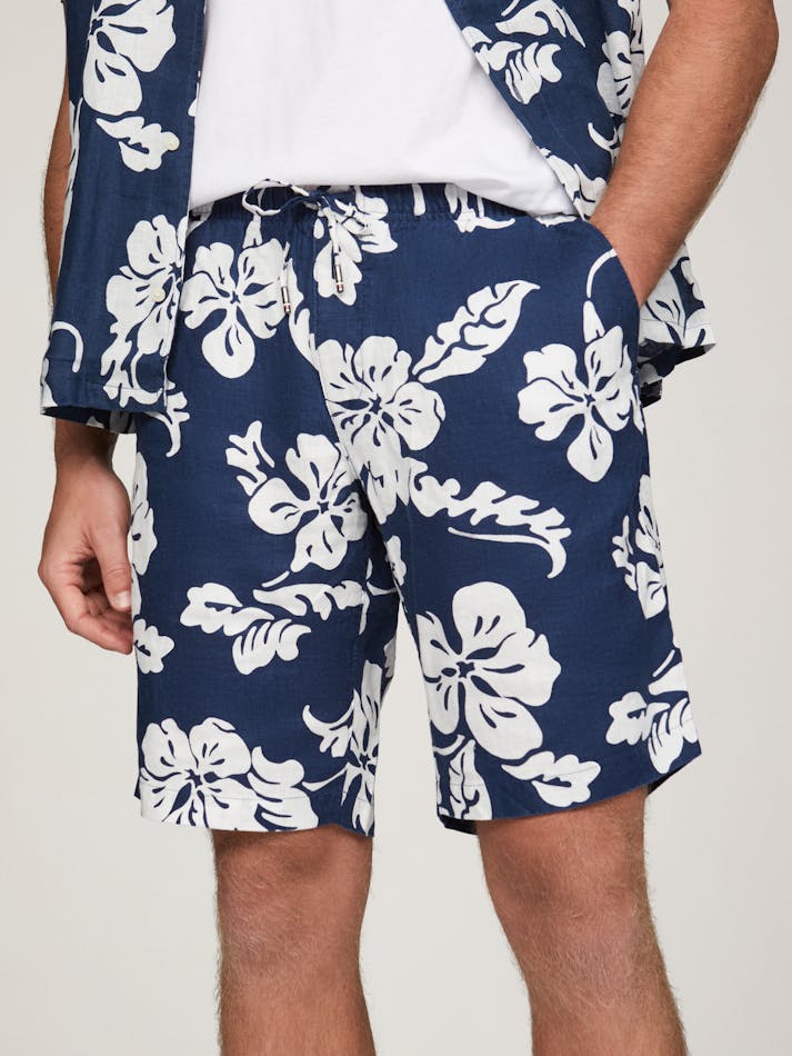 Switch on vacation mode with these pure linen shorts, featuring a comfortable elastic waist and statement floral print.