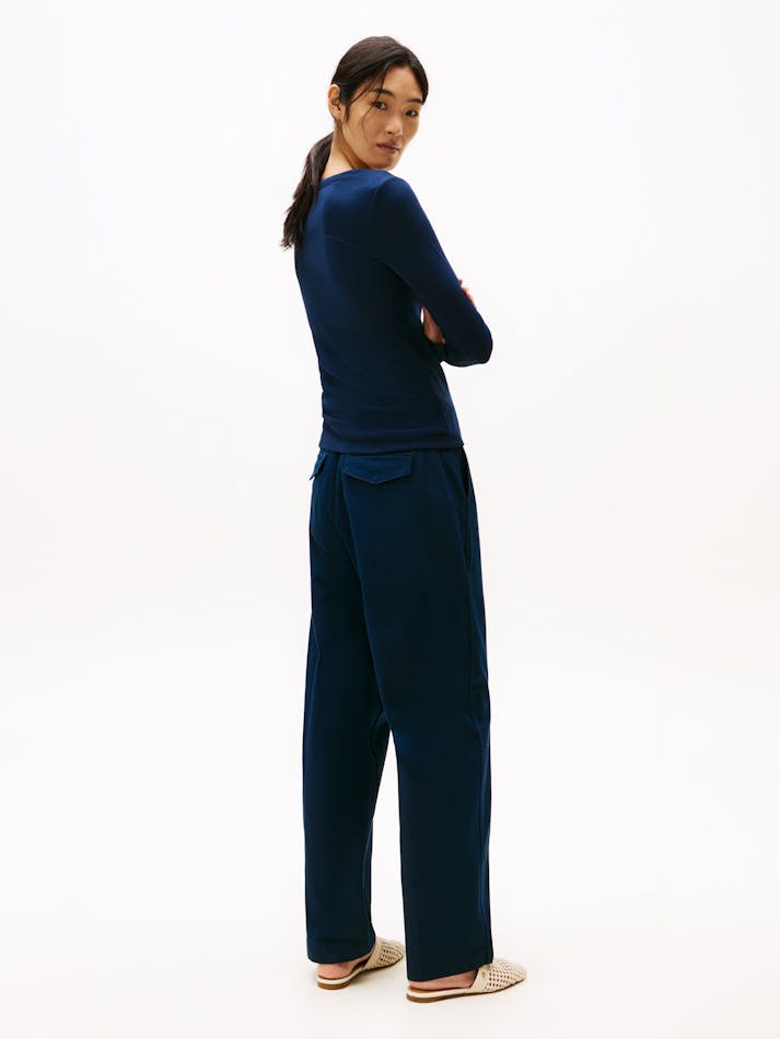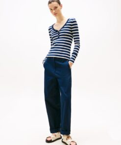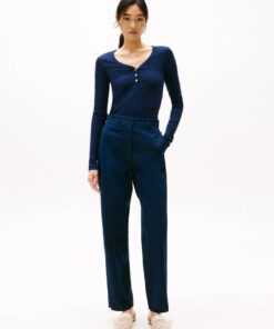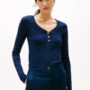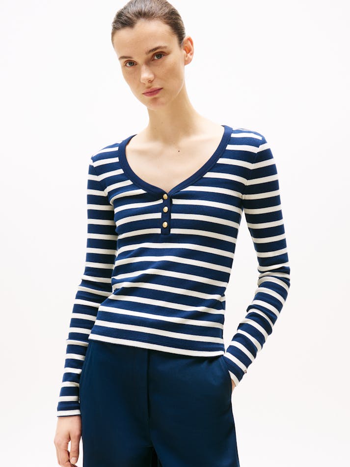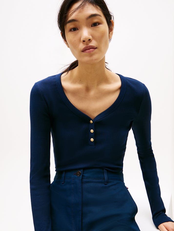 This slim-fitting Henley T-shirt combines a scoop neck and gold-button detailing to create an elevated casual look with a nautical feel.