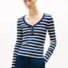This slim-fitting Henley T-shirt combines a scoop neck and gold-button detailing to create an elevated casual look with a nautical feel.