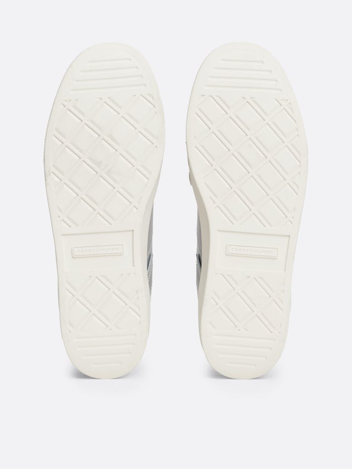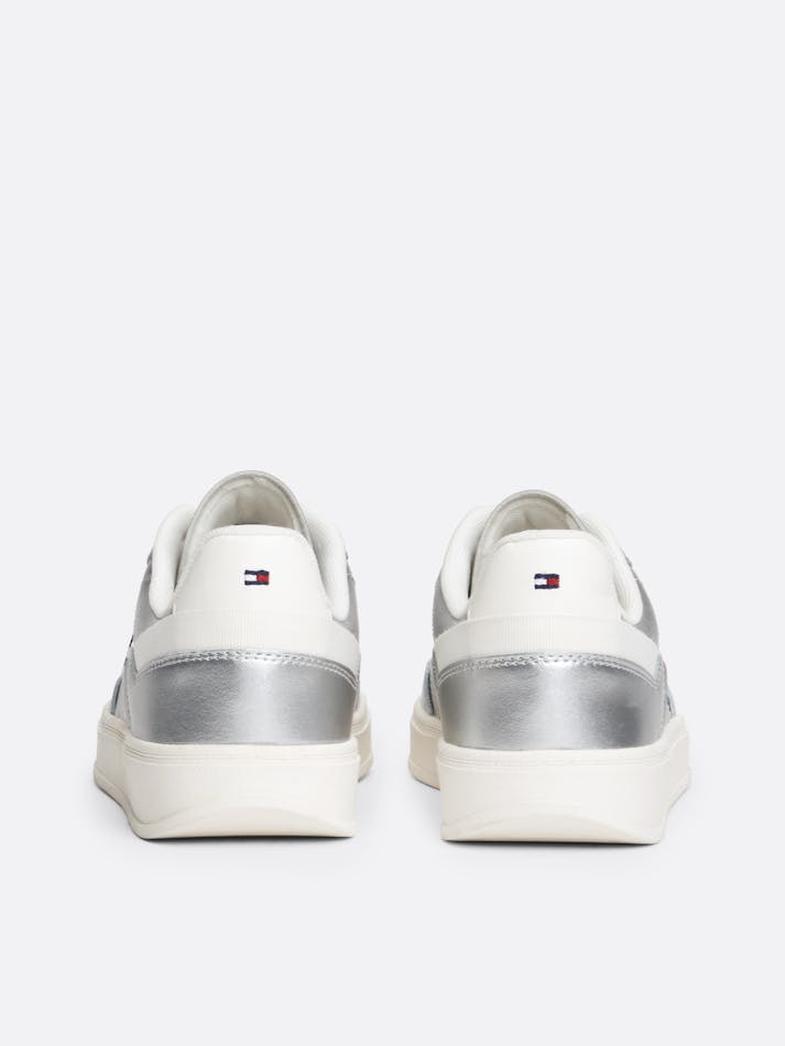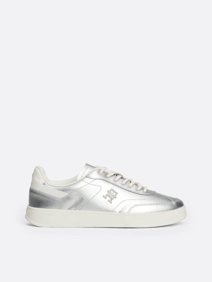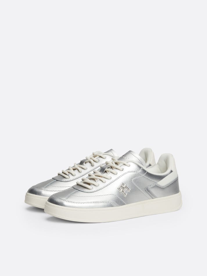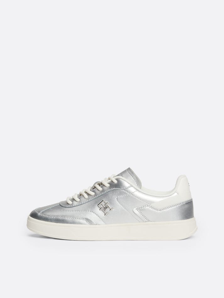 Made from leather with a shiny metallic finish, these trainers will amp up the glamour on casual days.