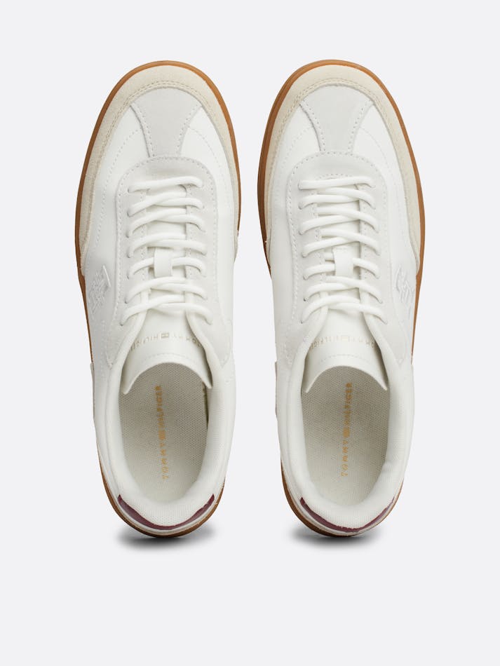 These low-profile court trainers feature mixed texture panels and colour-pop details in soft suede, for a dynamic retro aesthetic.