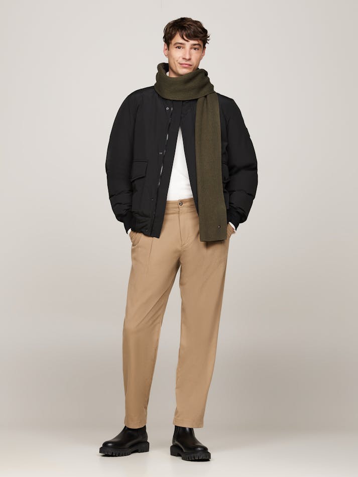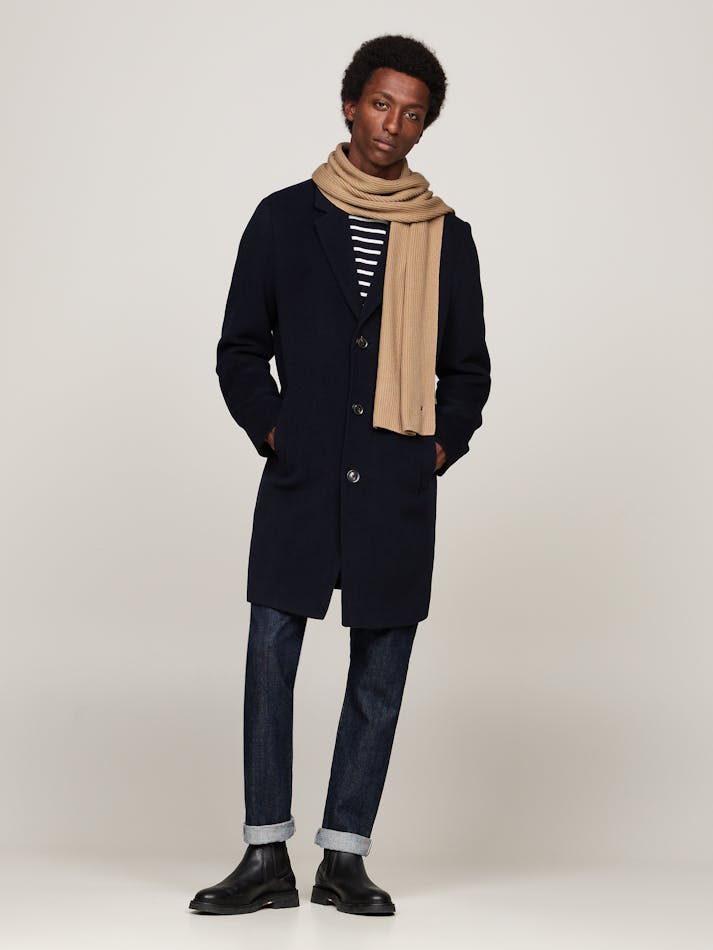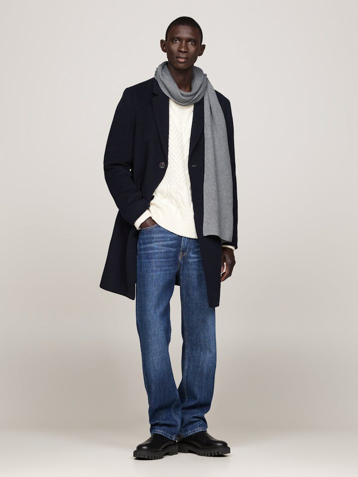 For a timeless look choose this mid-weight, rib-knit scarf, made from soft cotton with a luxe touch of cashmere.