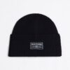 A Hilfiger monotype logo patch on the turn-up cuff brings an outdoors-inspired look to this ribbed pure wool beanie hat.