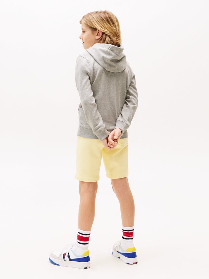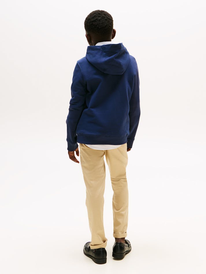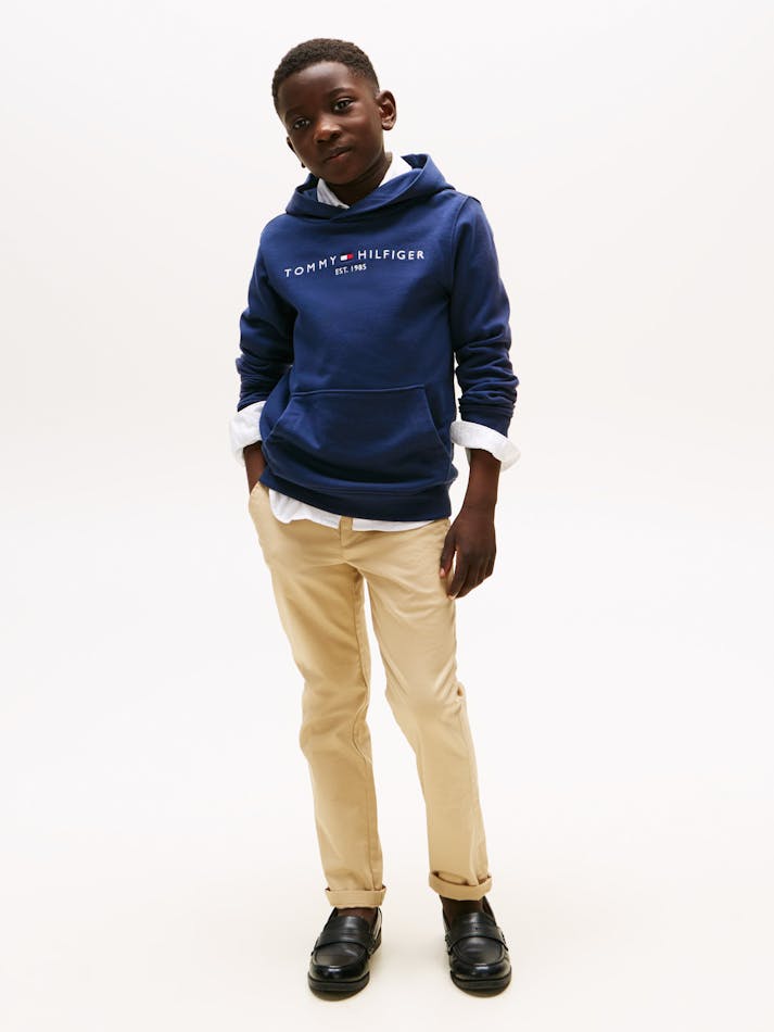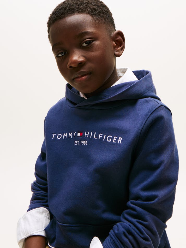 Crafted from a soft fleecy Cotton, this essential hoodie fuses comfortability, a timeless silhouette and style. Branded with the iconic Tommy Hilfiger logo, this hoodie will elevate your winter wardrobe and team like a dream with the essential collection.