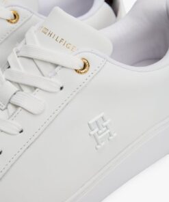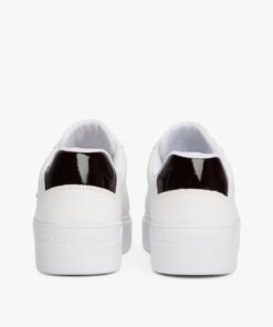 These court trainers with elevated soles feature grained and patent leather panels on the heel for a subtle mix of textures.