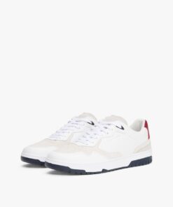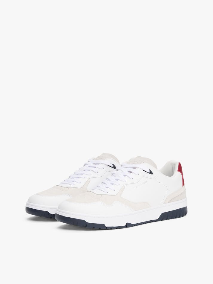 LEATHER MIXED TEXTURE BASKETBALL TRAINERS