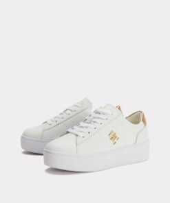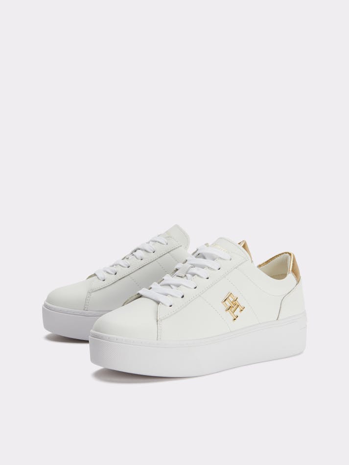 Metallic highlights add pops of eye-catching shine to these leather court trainers, while the platform sole really elevates the look.