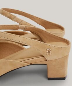 Complement occasion wear with these chic block-heel mules, crafted from smooth leather with an elegant pointed toe and polished TH monogram decoration.