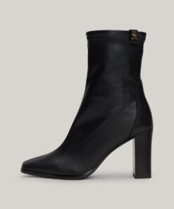 Step up for the occasion in these sleek leather boots, elevated by a towering block heel and a modern square toe.