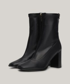 LEATHER SQUARE TOE BLOCK HEEL BOOTS