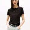 Refine your outfits with this slim leather belt featuring a polished rounded buckle and coordinated TH monogram detail on the keeper.