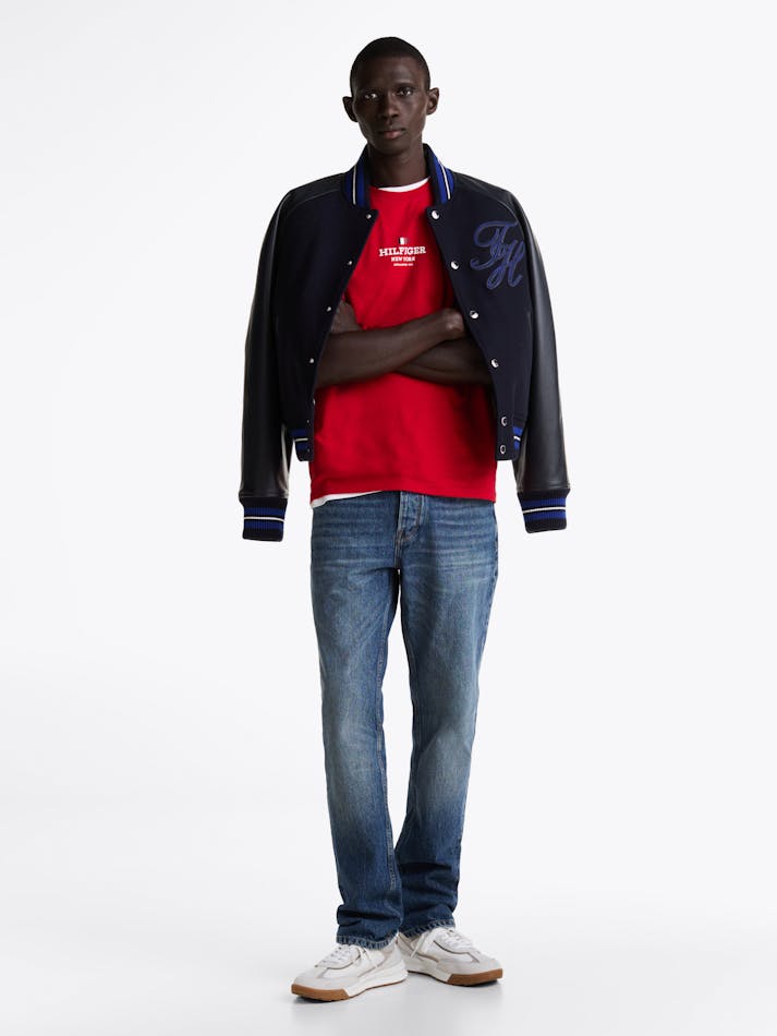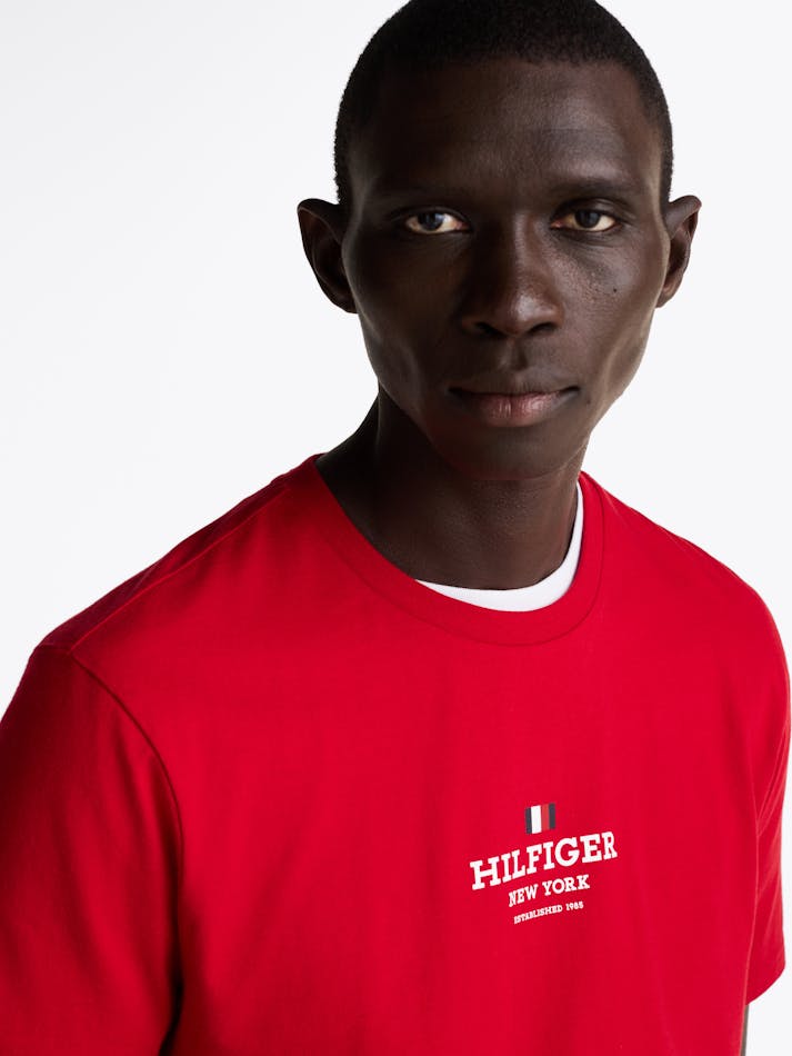 A bold Hilfiger monotype logo lends a sporty spin to this T-shirt, making it a great choice for laid-back weekend looks.