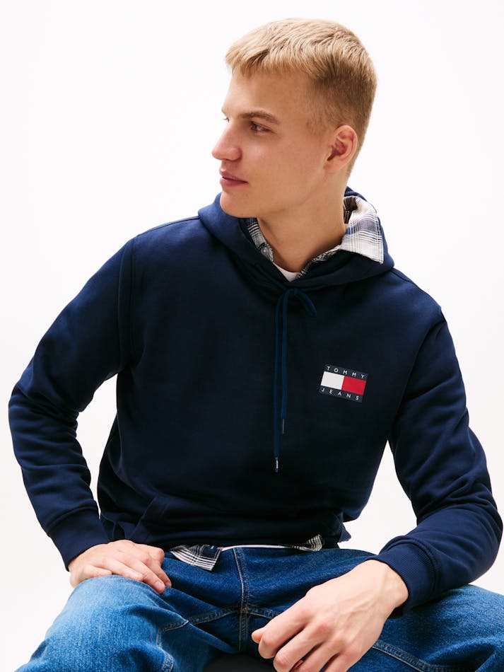 This classic pullover hoodie has a regular fit for comfort and features a Tommy badge for a bold athleisure look.