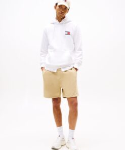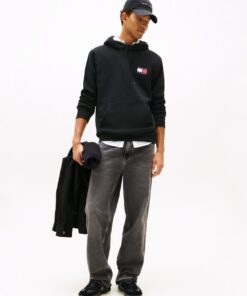 This classic pullover hoodie has a regular fit for comfort and features a Tommy badge for a bold athleisure look.