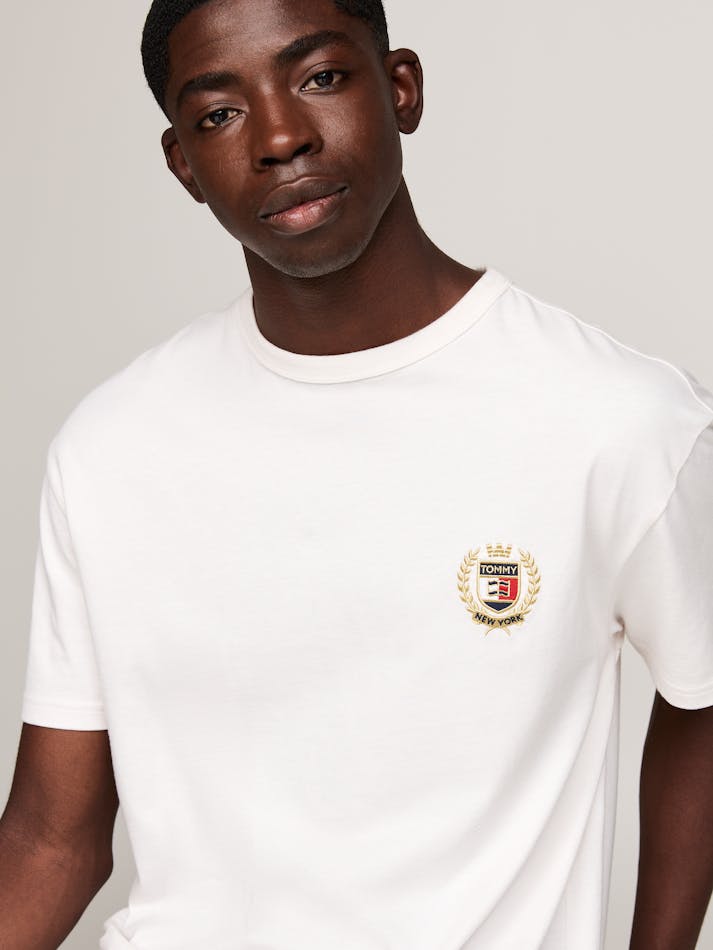 Navigate the passage between seasons in this cotton T-shirt, with its crest logo design giving it a statement look.