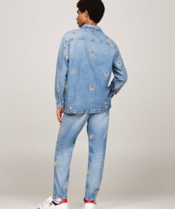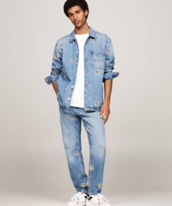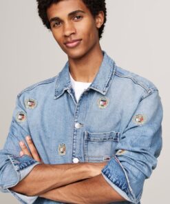 Upgrade your smart-casual collection with this versatile denim overshirt, featuring eye-catching all-over crest motifs and a chest pocket for practicality.