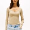 For that lived-in look, turn to our garment-dyed range. The colour is applied after the clothes have been constructed for a vintage appearance.This long-sleeved scoop V-neck T-shirt features sweet scalloped edges and is garment dyed for a soft, slightly faded finish.