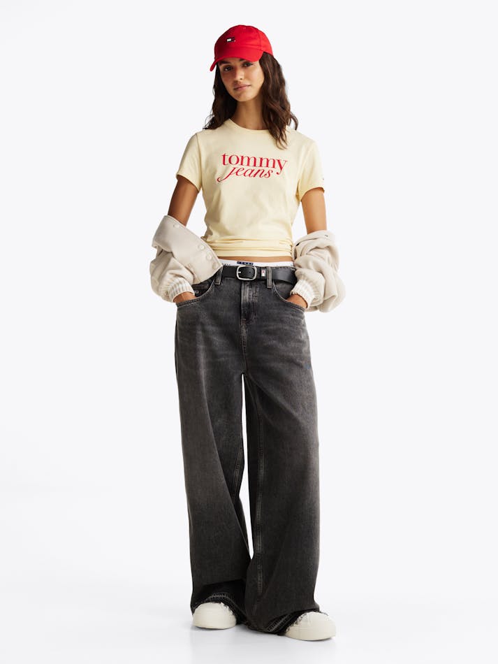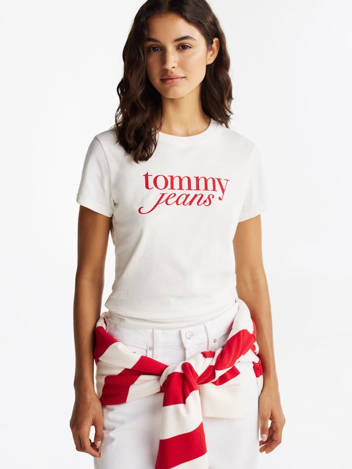 Elevate an everyday outfit with this flattering slim-fit T-shirt, complete with the chic Tommy Jeans logo on the front.
