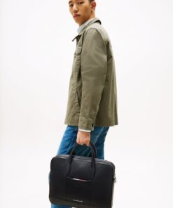 METAL LOGO PEBBLE GRAIN LAPTOP BAG