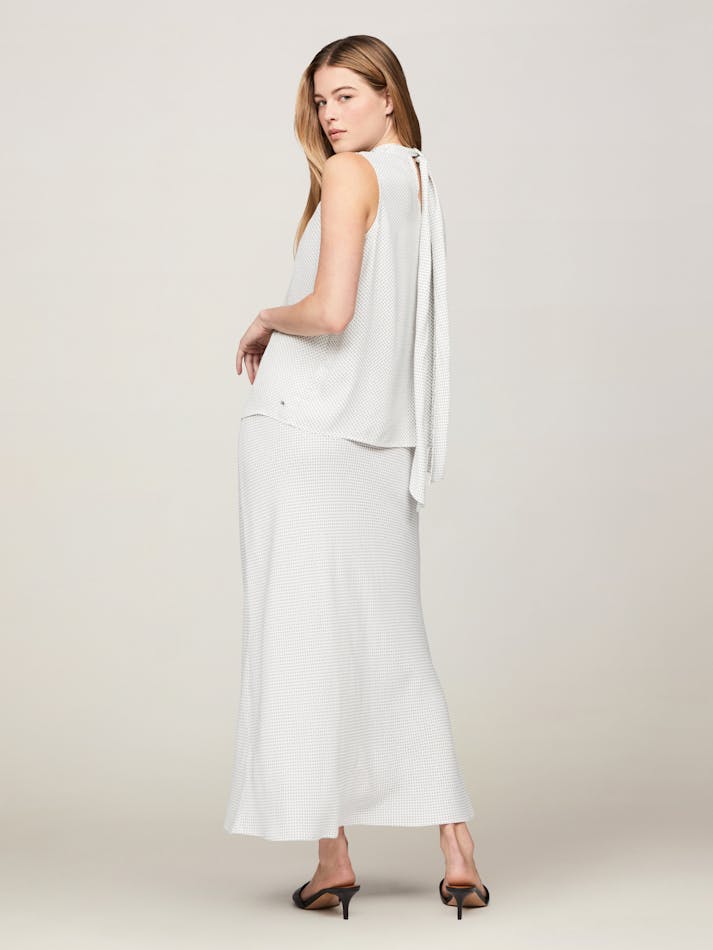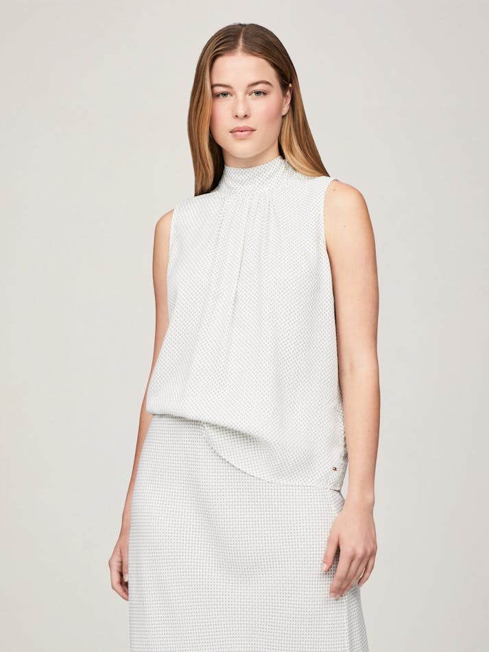 The playful bow at the neck makes this viscose top the ideal dress up or dress down option for any occasion, featuring a sleeveless design and finished with a mini dot print.